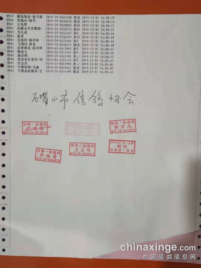 宁夏黄河赛鸽公棚2026年收鸽清单(如信息有误请添加电脑员微信:17711895158 )