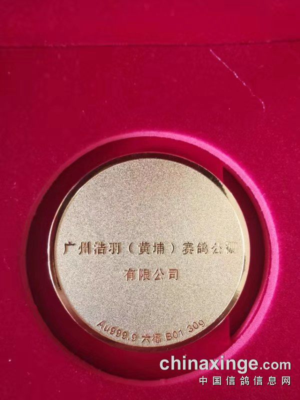 广州浩羽(黄埔)公棚第二届东南九省一市锦标赛纯金奖牌亮相