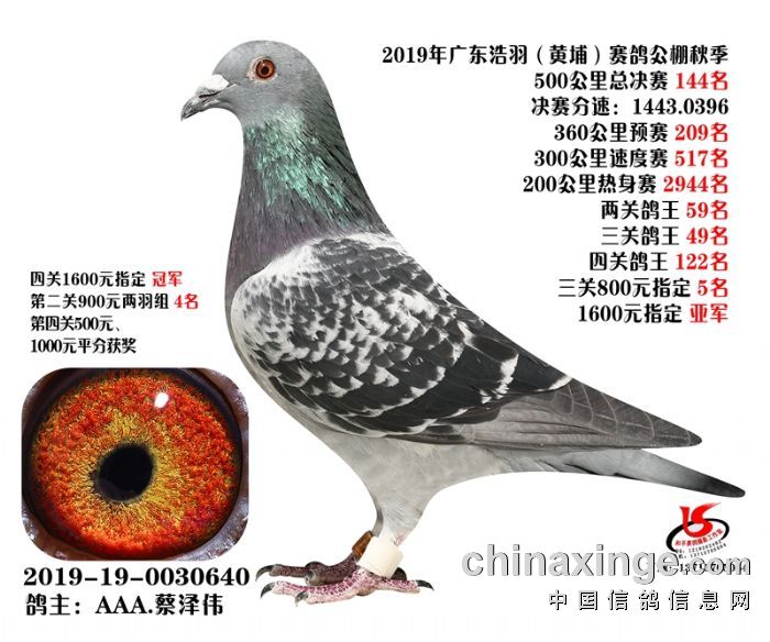 广州浩羽(黄埔)公棚2019年决赛获奖鸽图片(121名-150名)