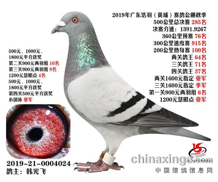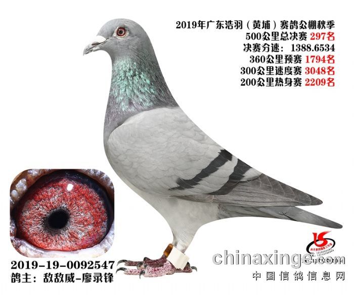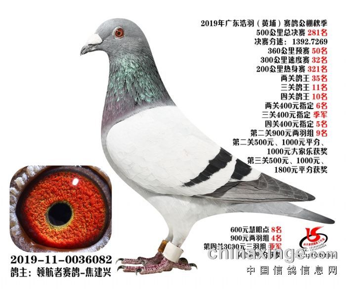 广州浩羽(黄埔)公棚2019年决赛获奖鸽图片(271名-300名)