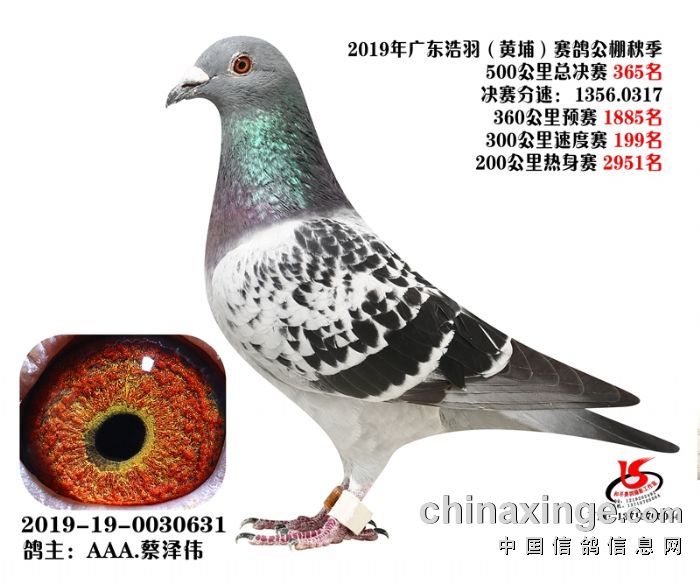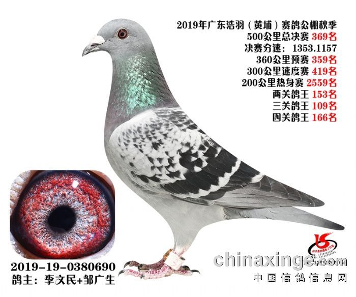 广州浩羽(黄埔)公棚2019年决赛获奖鸽图片(361名-390名)