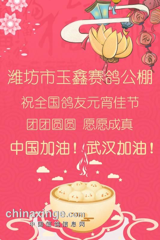 潍坊市玉鑫赛鸽公棚祝全国鸽友元宵节快乐