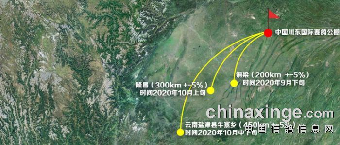 在这里更想说的是,中国川东国际赛鸽公棚坐拥一条黄金赛线是多好的福地。这条黄金赛线为实属巴蜀大地上的“黄金赛线”,赛线纵贯川渝,斜跨重庆铜梁(200空距级),纵越四川隆昌((300空距级)),直抵云南盐津县牛寨乡(450空距级),三条赛点为西南方位,沿途直通丘陵地带,完美避开寨子山、华蓥山、八耳山、石排山等邻近高大山脉。