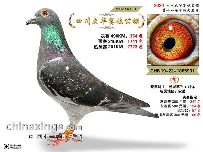 四川大华2020年第11届优胜鸽图片(341-355名)