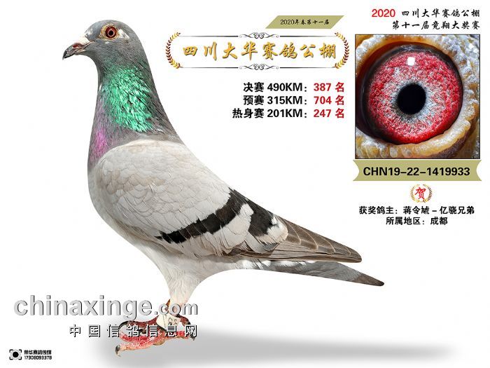 四川大华2020年第11届优胜鸽图片(386-400名)