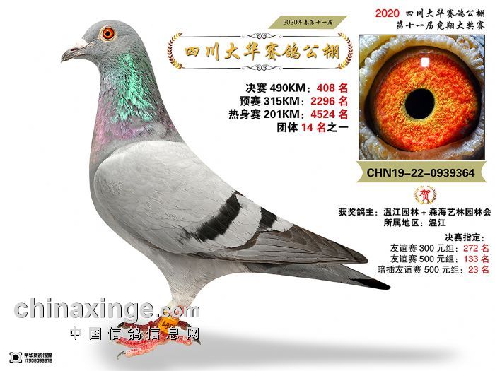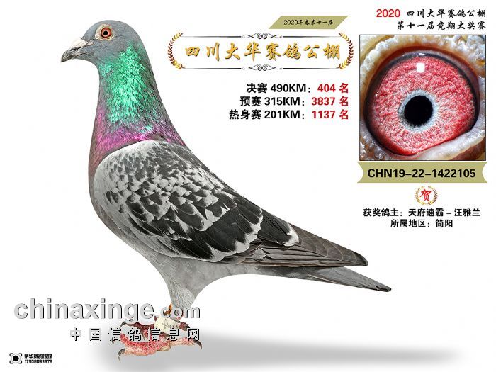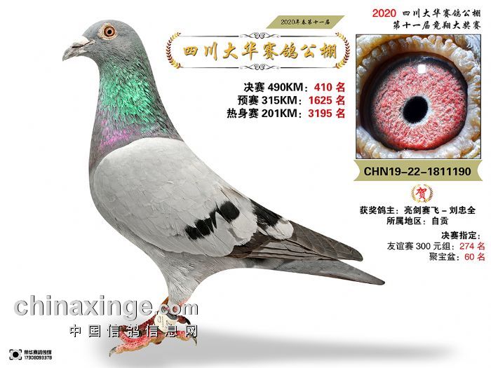 四川大华2020年第11届优胜鸽图片(401-415名)