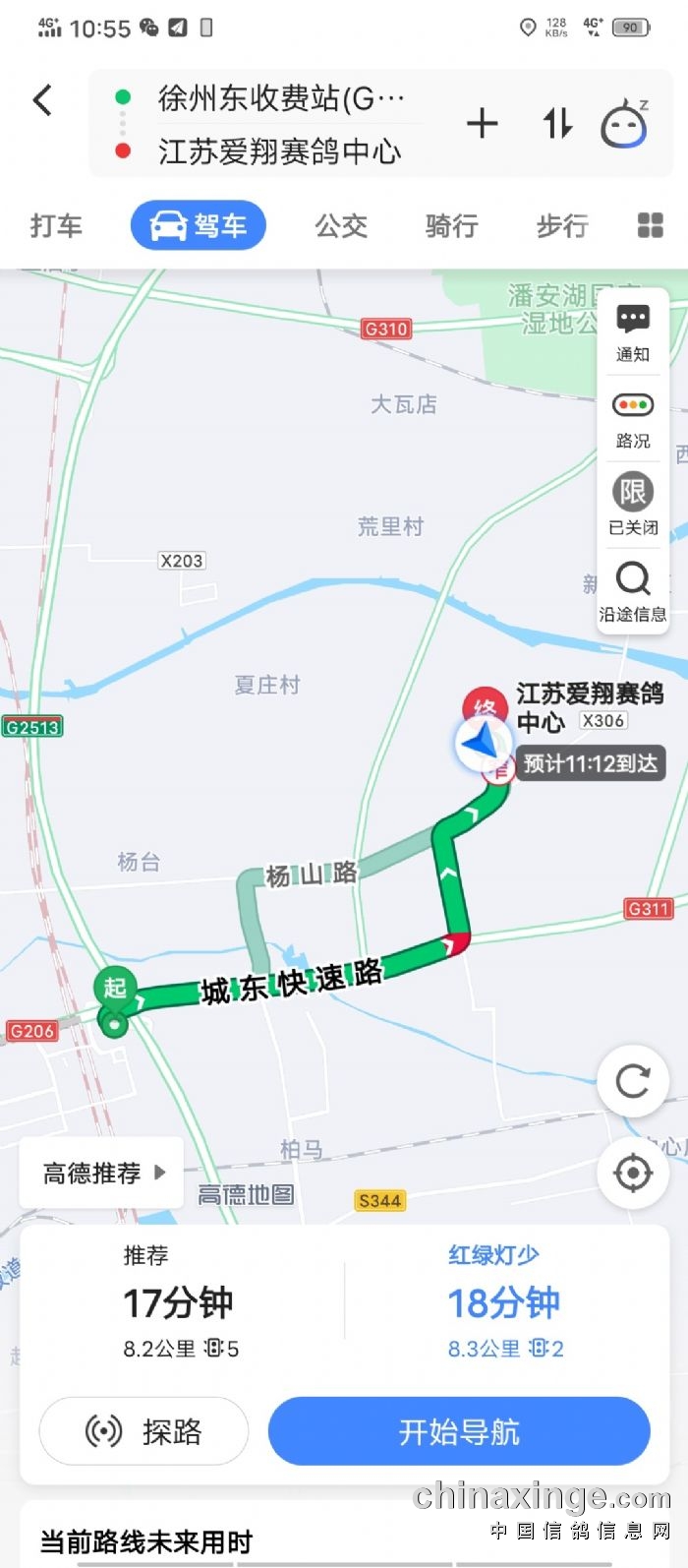自驾路线地图(导航搜索:江苏爱翔赛鸽中心)