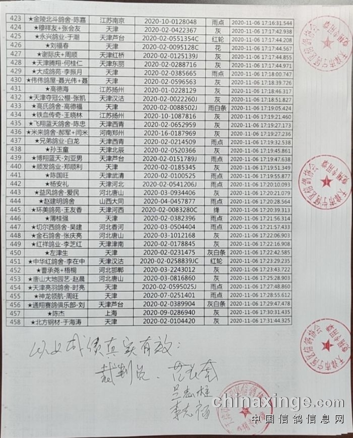 当日归巢458名成绩有效