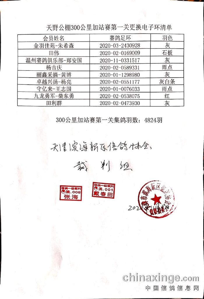 天津天野公棚加站赛300公里第一关更换电子环清单