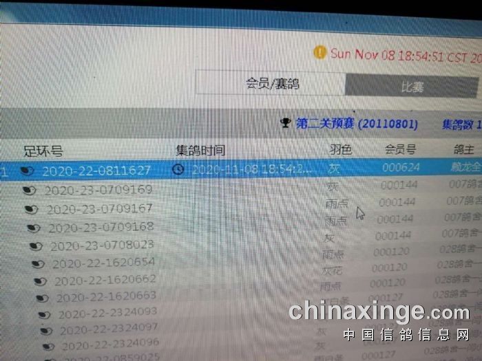18点54分随着第一羽鸽子扫描成功,人工逐羽扫描工作正式开始