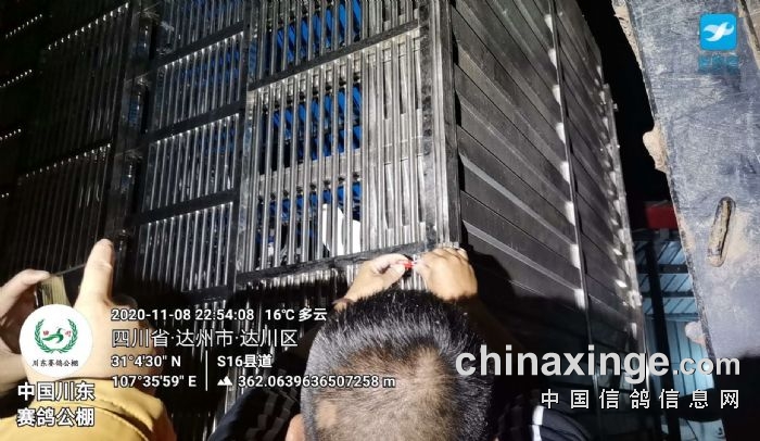 10点51分随着最后一羽鸽子扫描装笼逐羽扫描核对工作结束,并由金手指信鸽体育传媒全程直播裁判组进行查棚工作