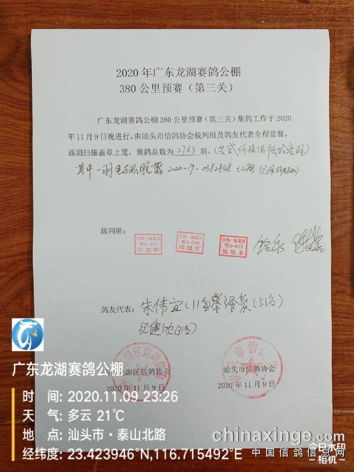 2020年广东龙湖公棚380公里预赛(第三关)集鸽图片
