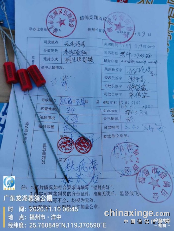 广东龙湖公棚--2020年380公里预赛(第三关)开笼时间:11月10日6点40分