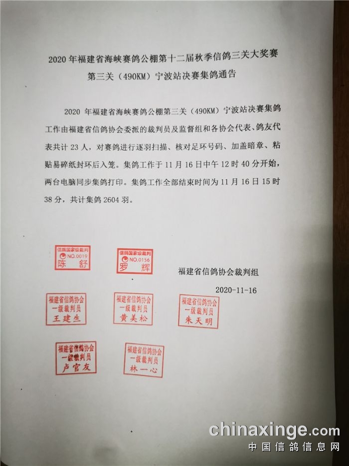 11、 预祝2020年宁波站决赛圆满成功!祝广大鸽友继续摘金夺银,勇创佳绩!