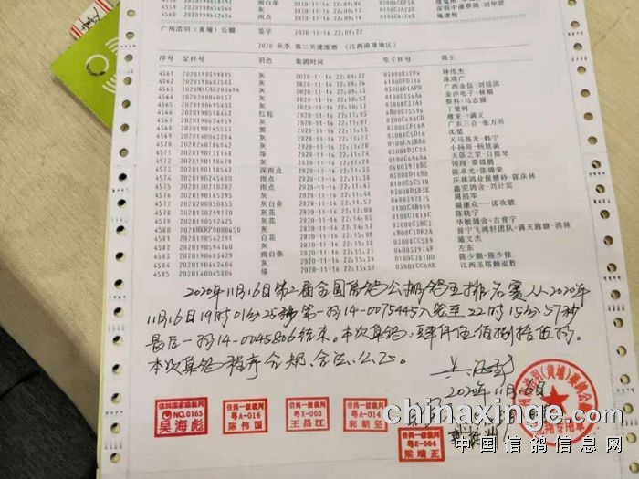 广州浩羽(黄埔)公棚第一关单羽四关赛有效名单(开笼起至次日19:00为有效报到期)