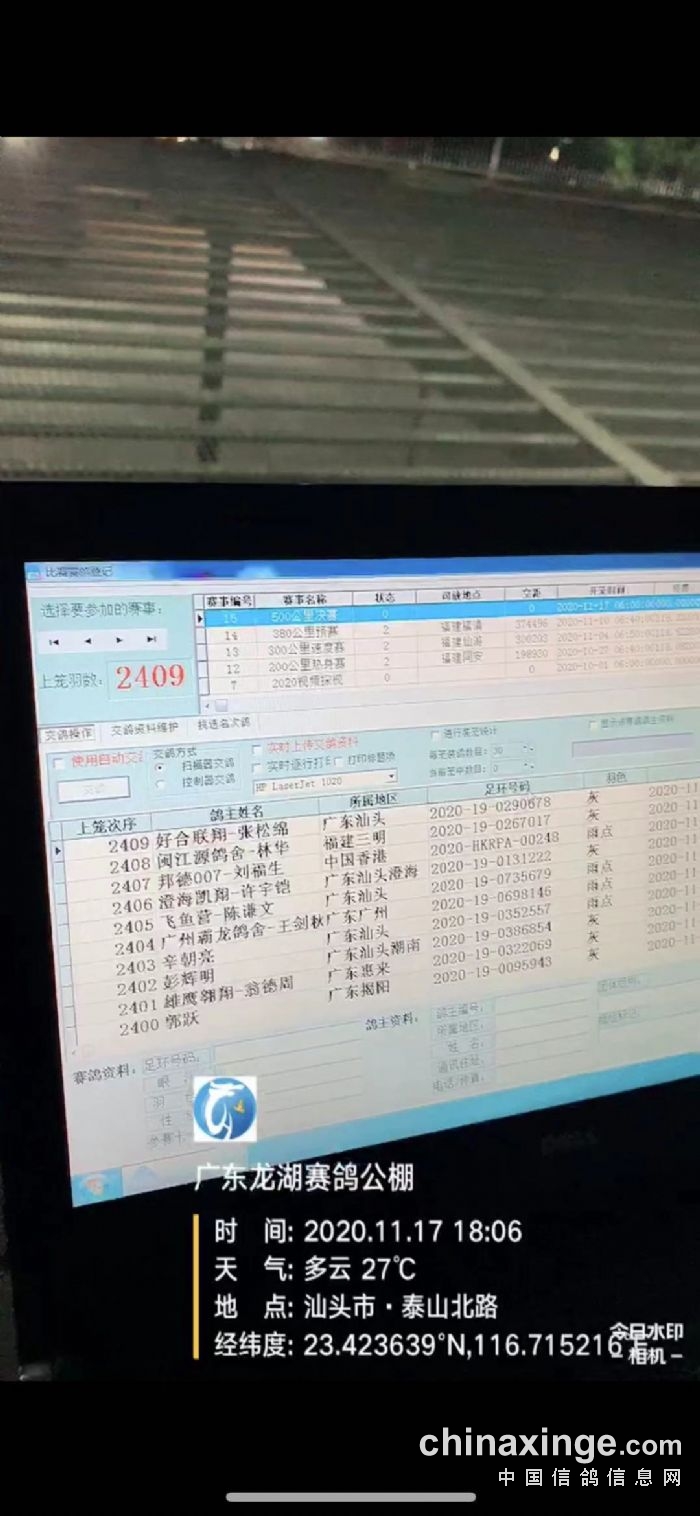 2020年广东龙湖公棚500公里决赛(第四关)集鸽图片