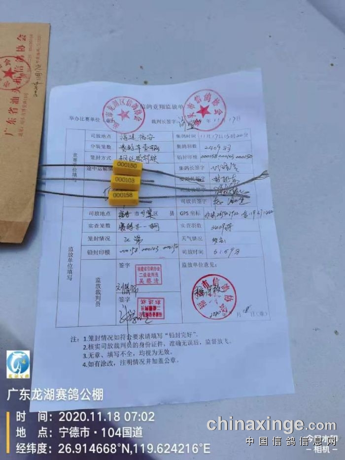 广东龙湖公棚--2020年500公里决赛(第四关)开笼时间:2020年11月18日6点59分