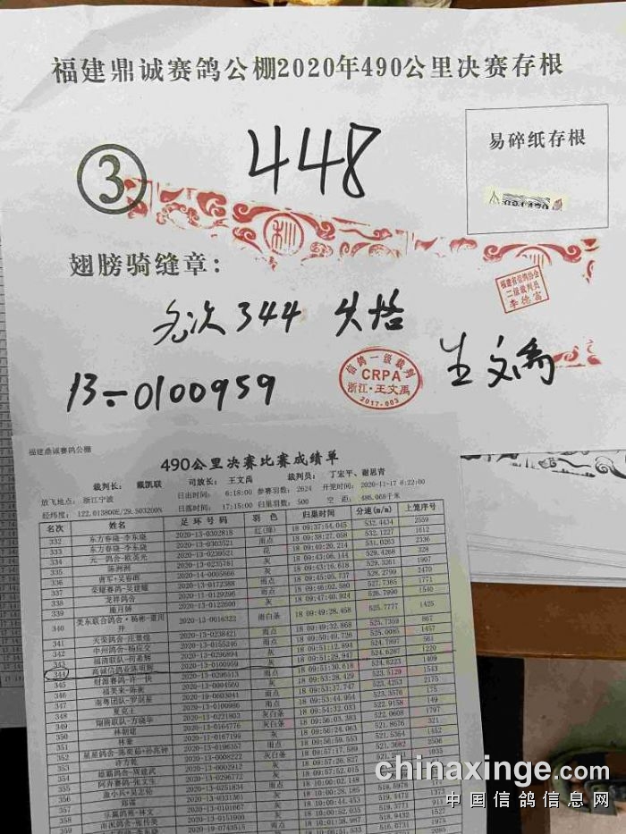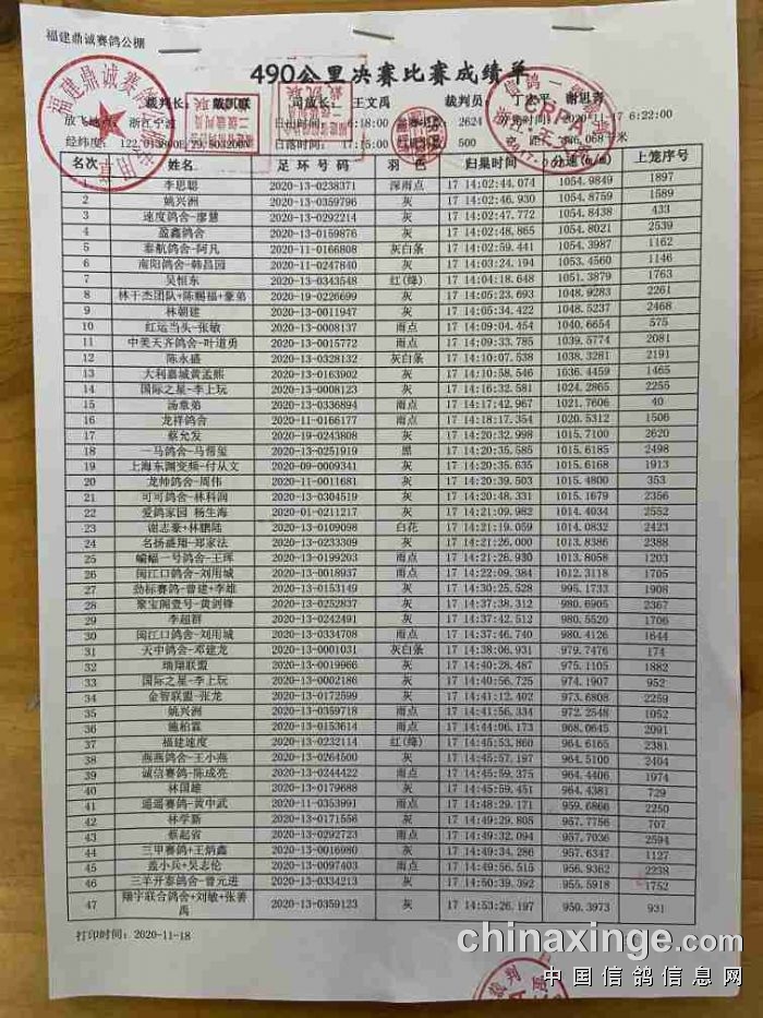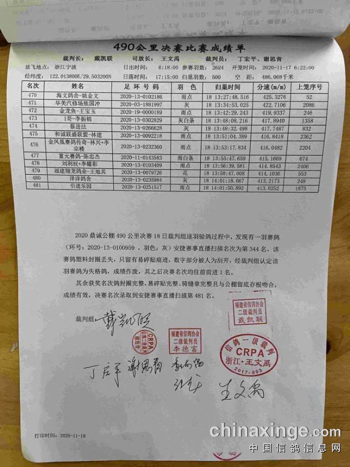 其余获奖名次鸽封圈完整,易碎贴完整、骑缝章完整且与公棚留底存根吻合,成绩有效,决赛名次录取到安捷赛事直播扫描第481名。