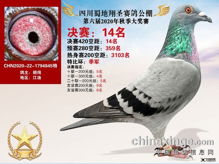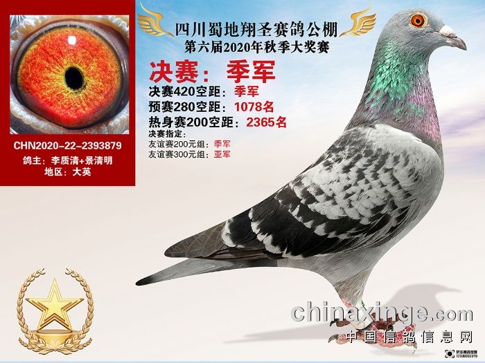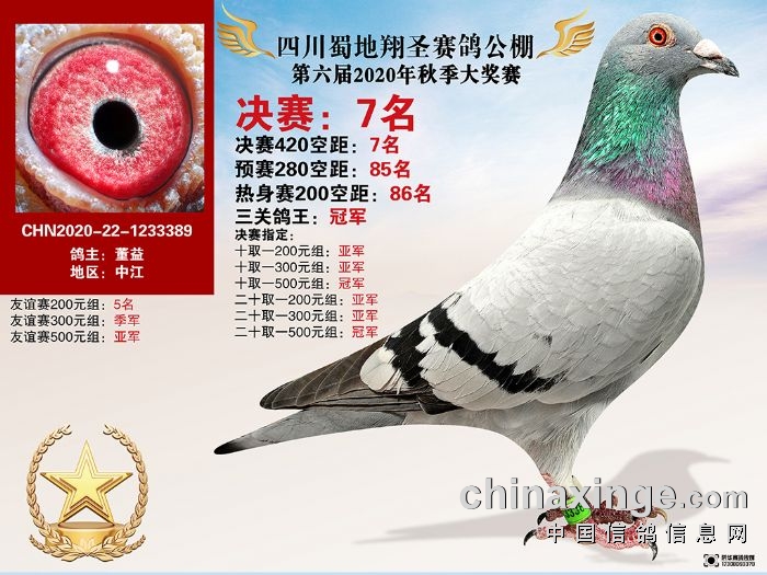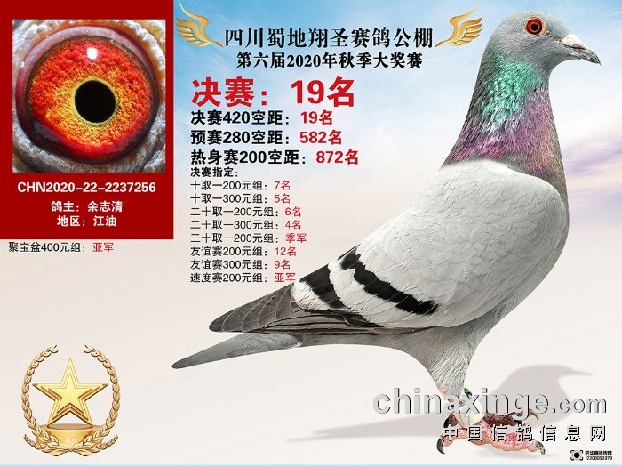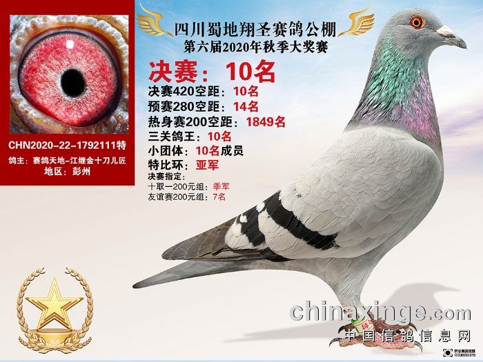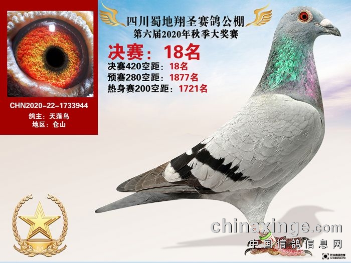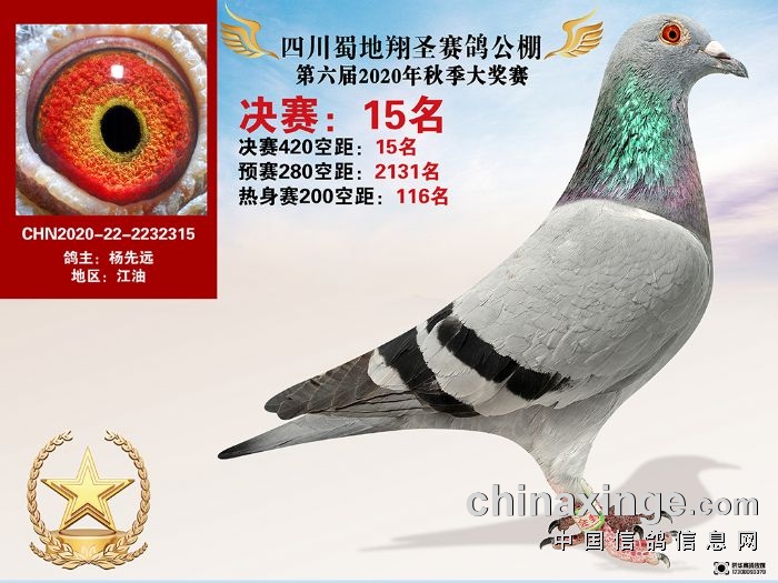 四川蜀地翔圣赛鸽公棚第六届决赛1-20名获奖鸽欣赏