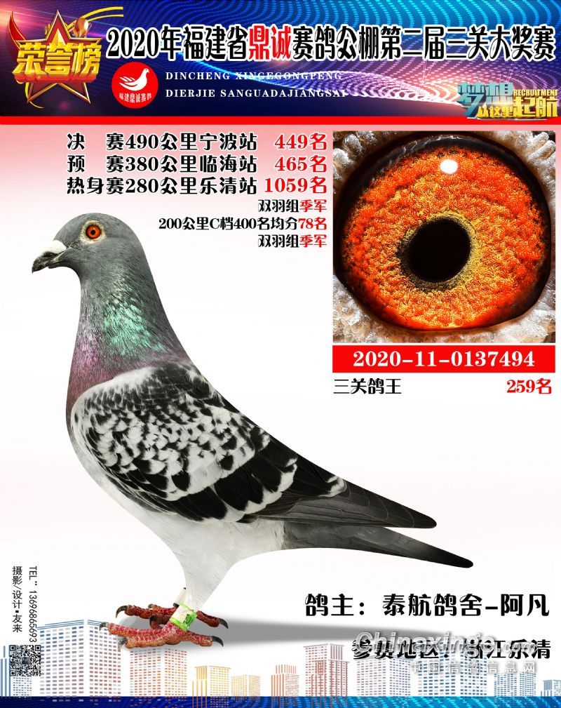 2020福建鼎诚490公里决赛获奖鸽靓影(431名-460名)