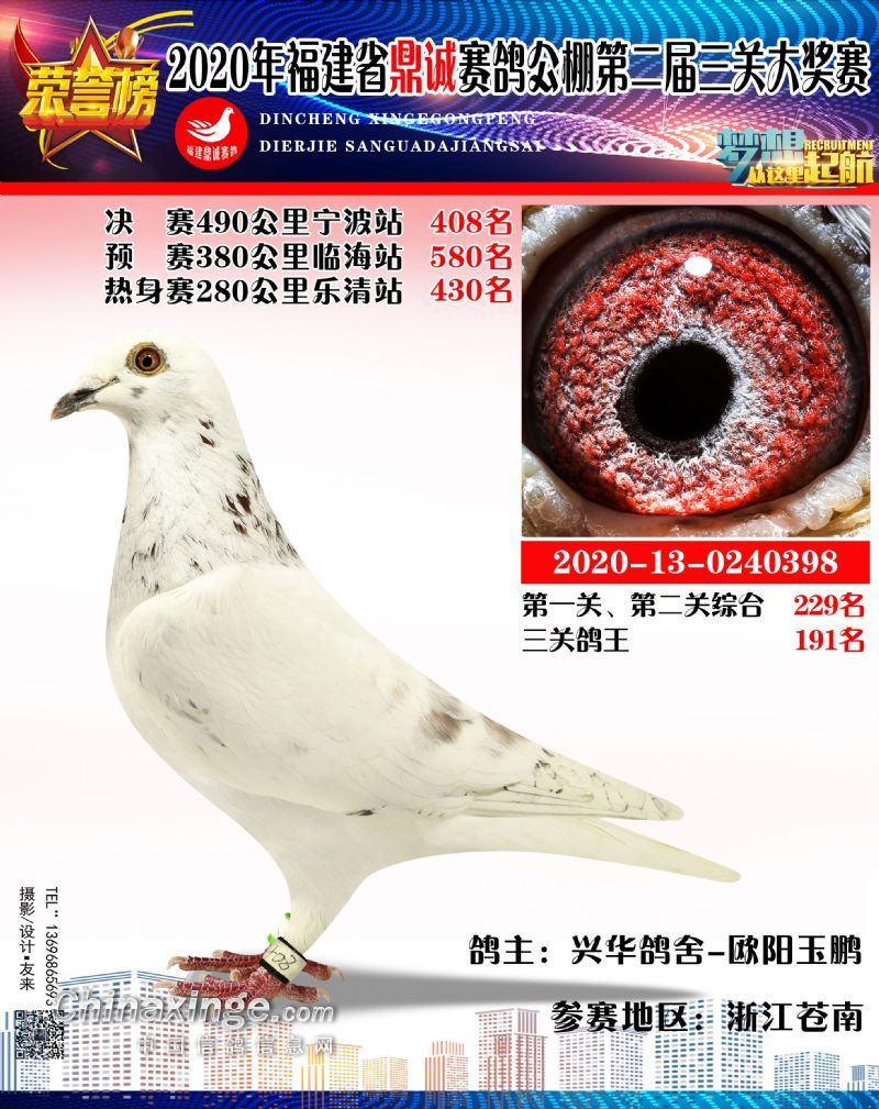 2020福建鼎诚490公里决赛获奖鸽靓影(401名-430名)