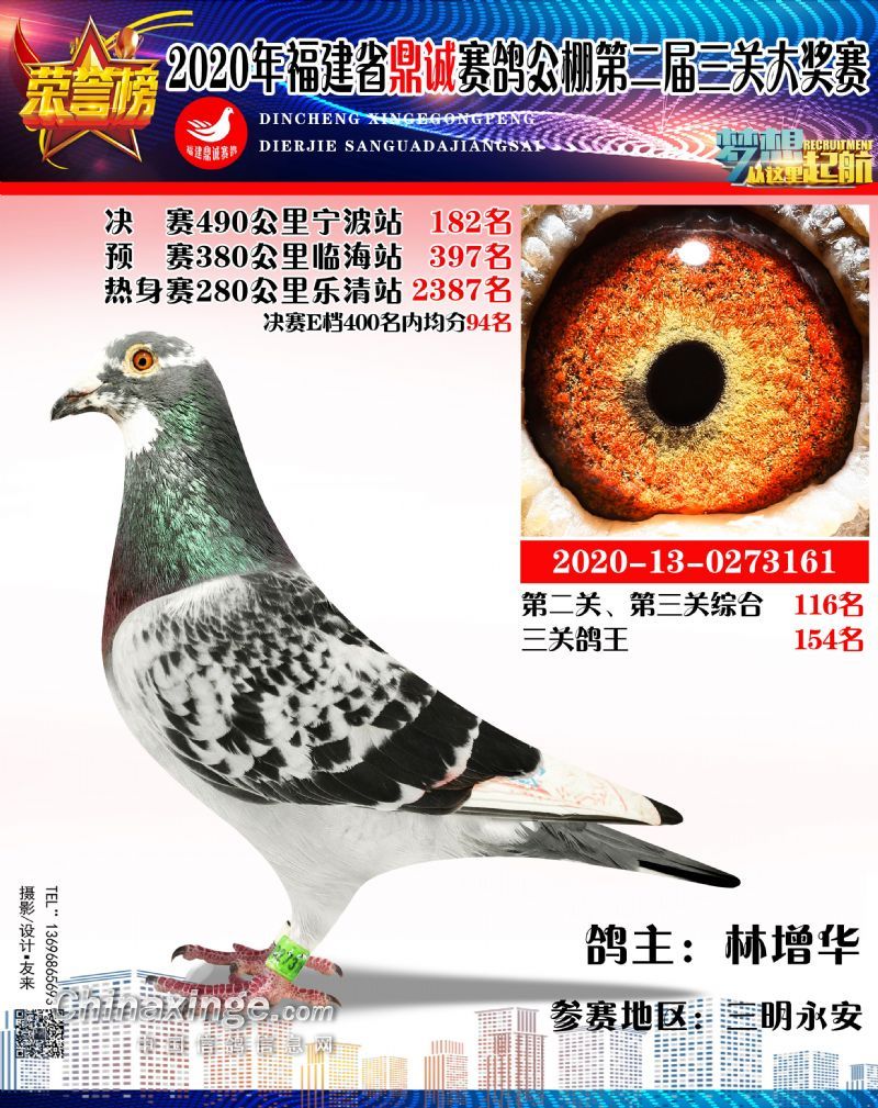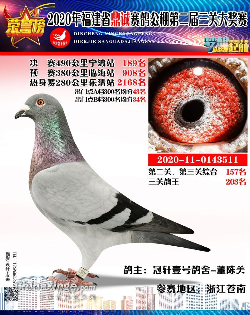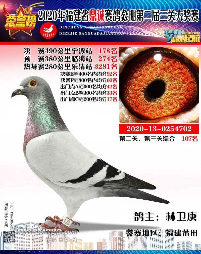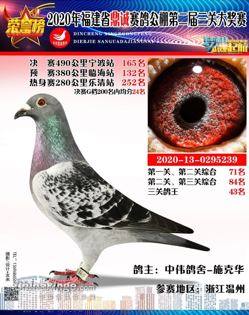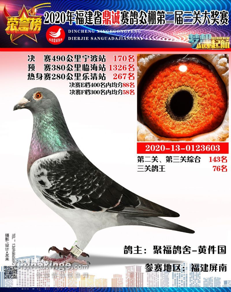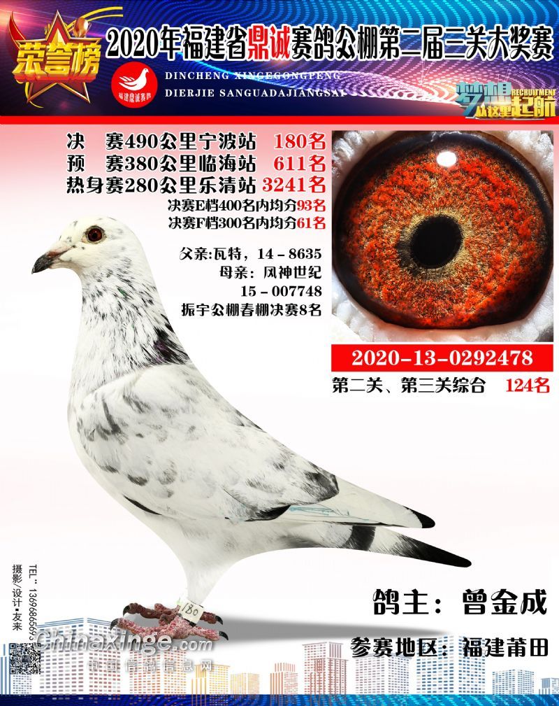 2020福建鼎诚490公里决赛获奖鸽靓影(161名-190名)