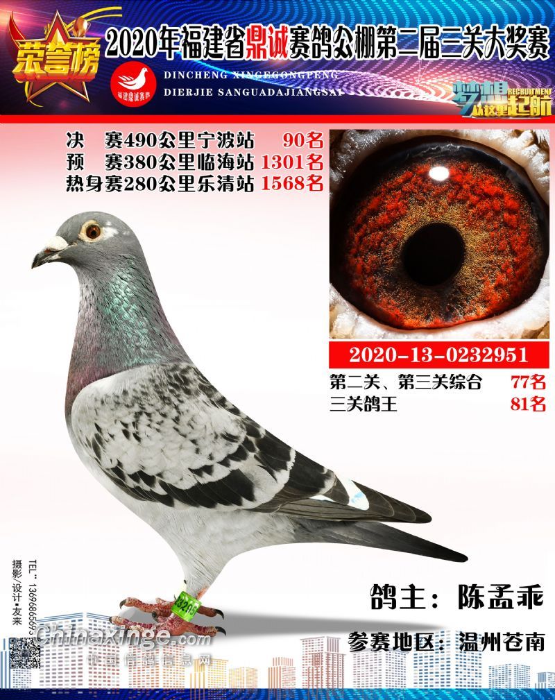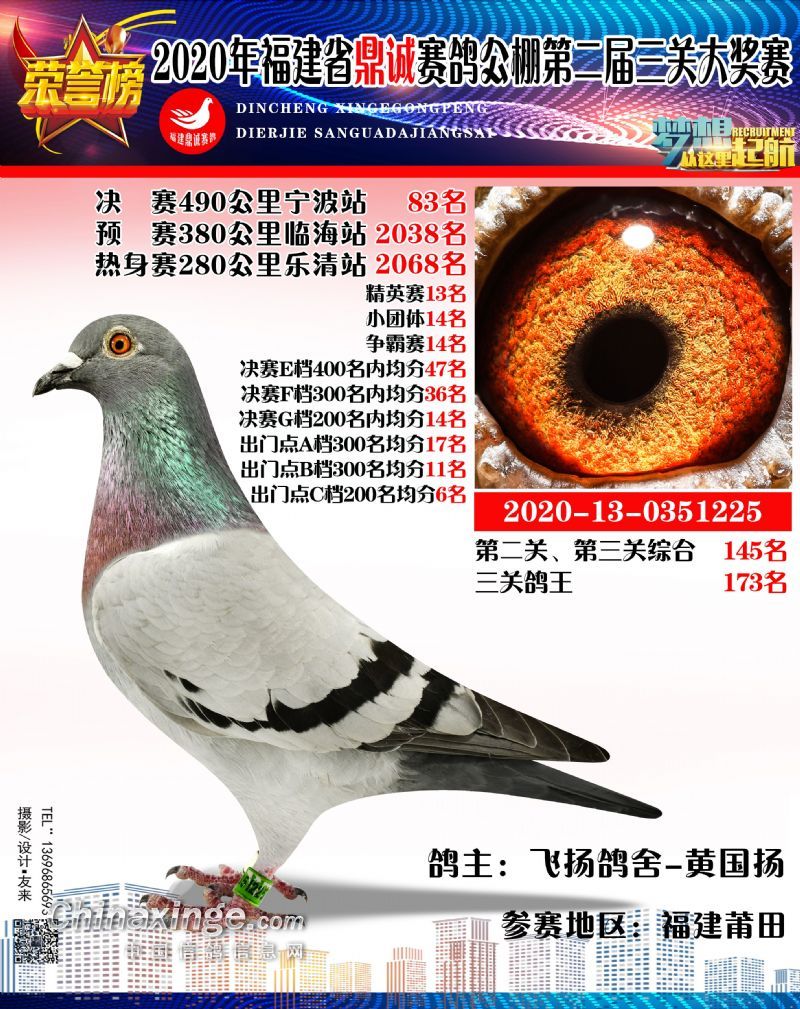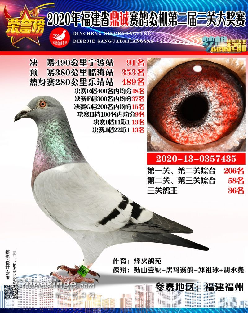 2020福建鼎诚490公里决赛获奖鸽靓影(71名-100名)