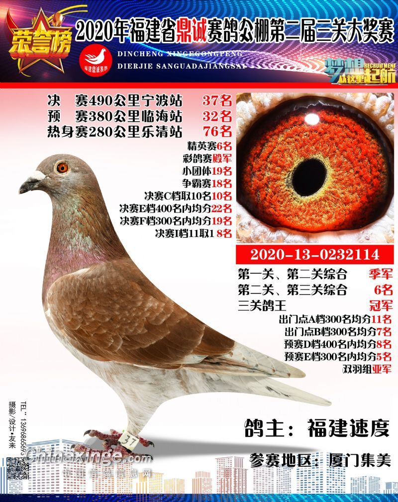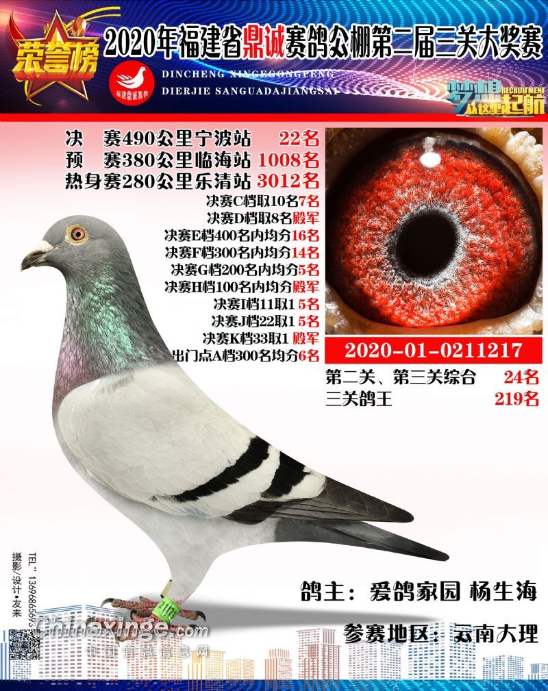 2020福建鼎诚490公里决赛获奖鸽靓影(11名-40名)