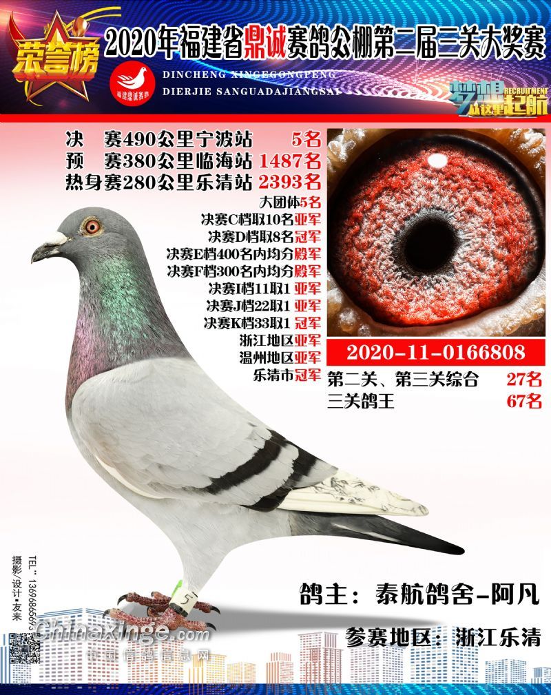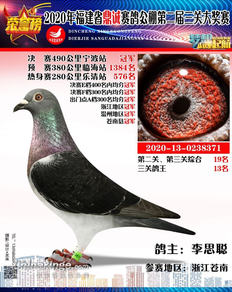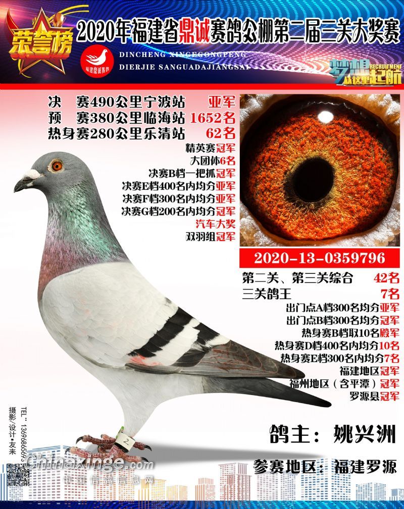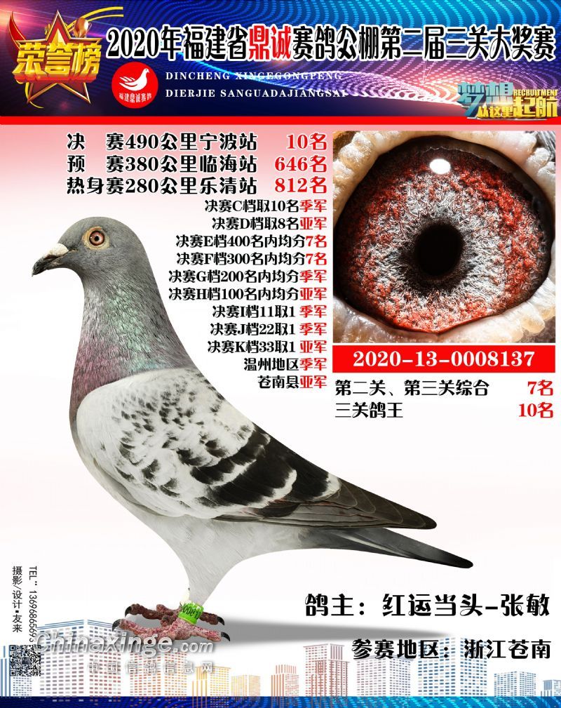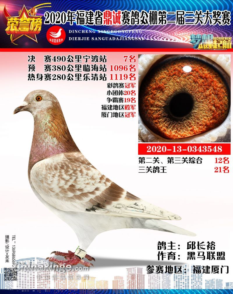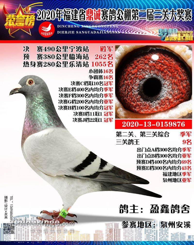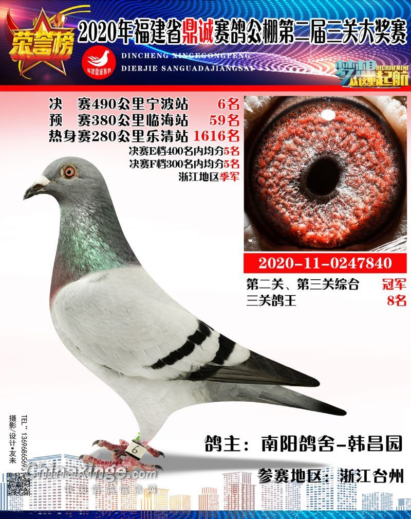 2020福建鼎诚490公里决赛获奖鸽靓影(1名-10名)