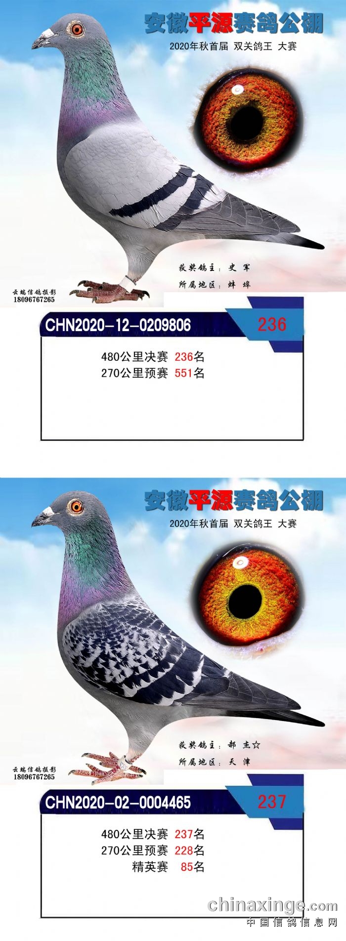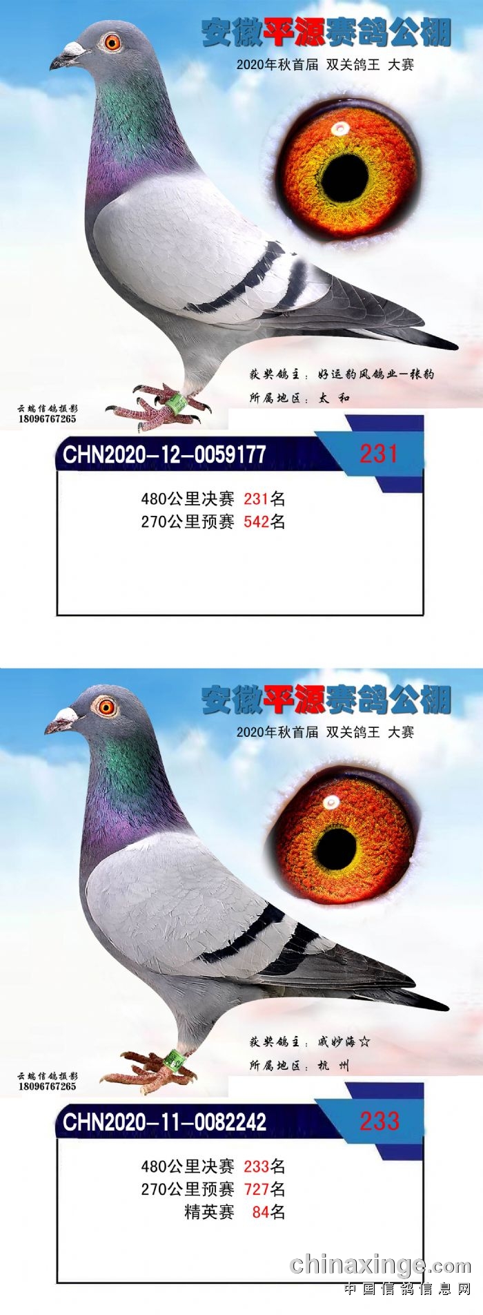安徽平源公棚2020年秋获奖鸽网络拍卖1-20 (2021.1.23)