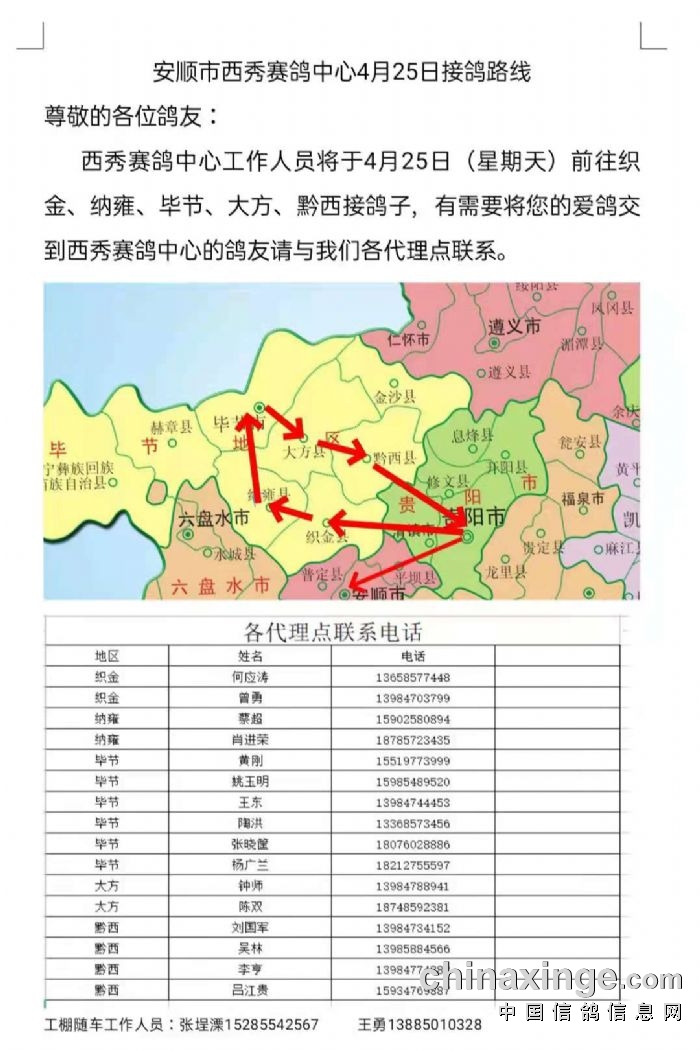 西秀赛鸽:3月1日黔大毕周边地区接鸽路线