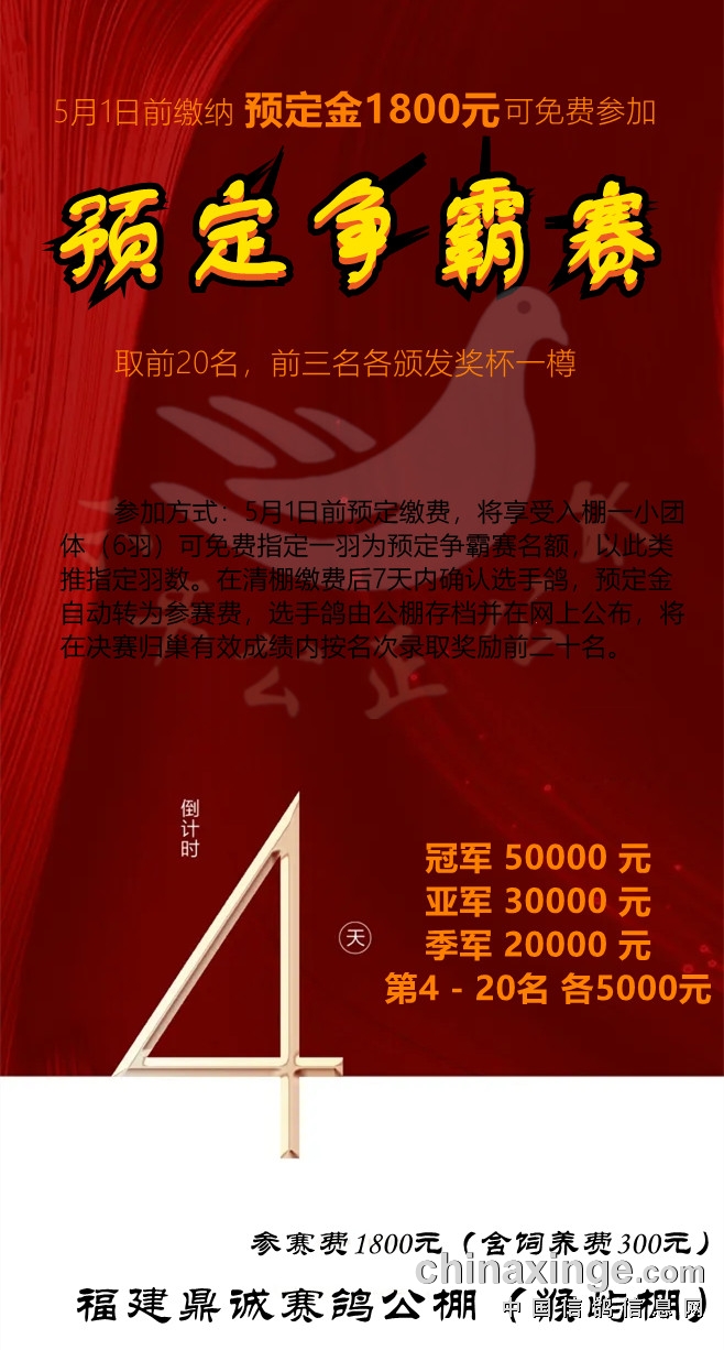 福建鼎诚赛鸽公棚(猴屿棚)- 预定享预定金争霸赛倒计时4天