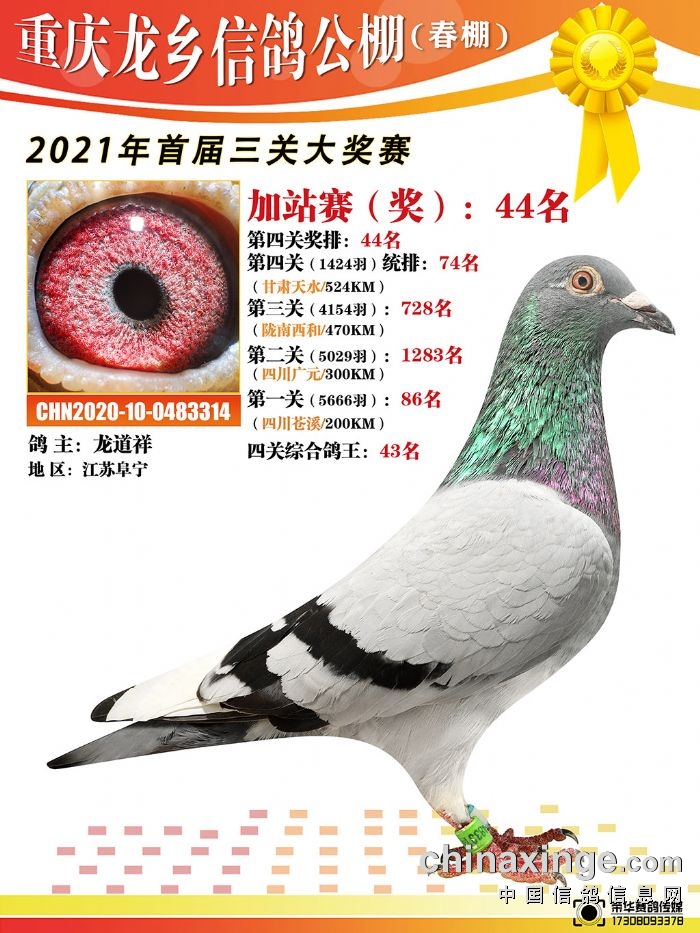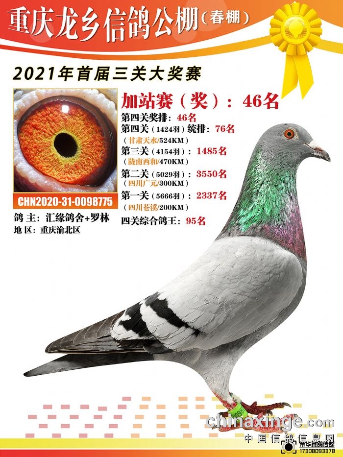 重庆龙乡赛鸽公棚(春棚)首届加站赛获奖鸽64~83名