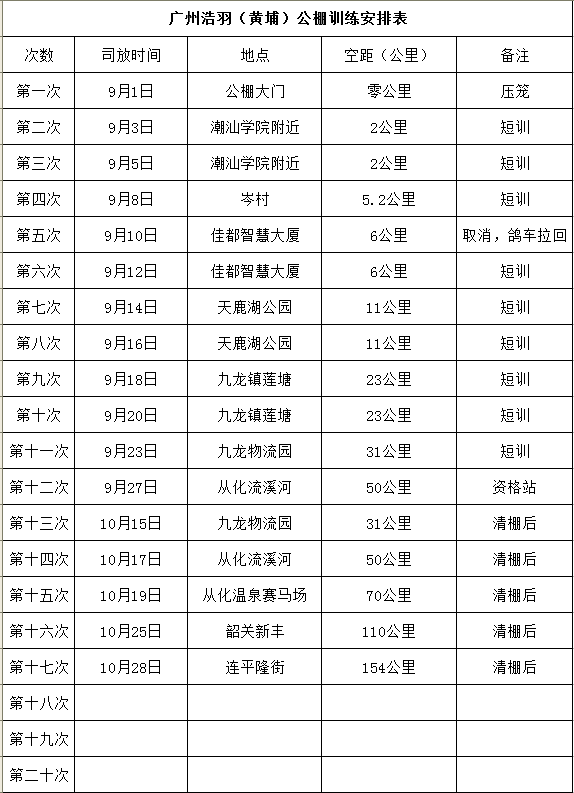广州浩羽(黄埔)公棚训练安排表