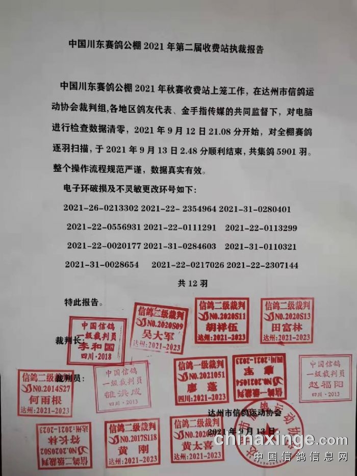 中国川东赛鸽公棚2021年秋第二届收费站执裁报告