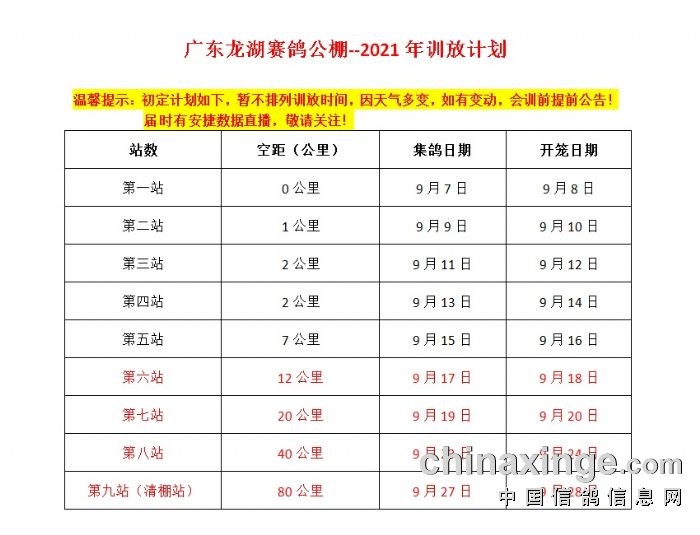 广东龙湖赛鸽公棚--2021年训放计划1