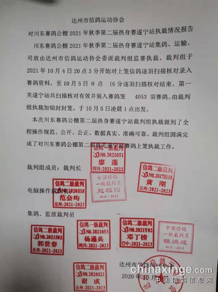 中国川东赛鸽公棚第二届热身赛遂宁站执裁报告