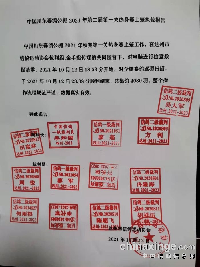 中国川东赛鸽公棚第二届热身赛遂宁站执裁报告