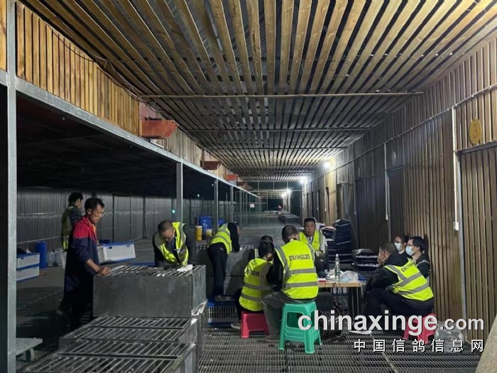 2021年10月12日下午6点53分,热身赛集鸽工作正式开始,集鸽现场