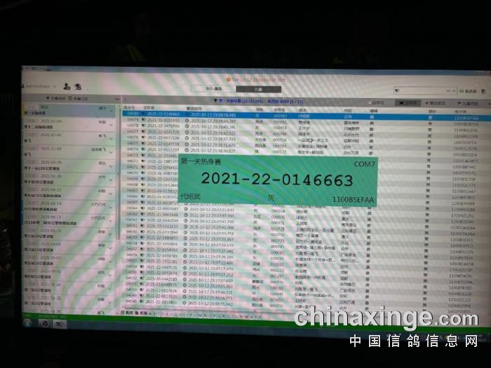 最后一羽上笼足环号:2021-22-0146663,随即裁判组对鸽棚进行仔细检查,确
