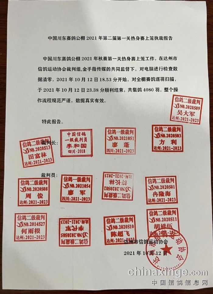 截止到2021年10月12日23:38分,集鸽工作正式结束,共计集鸽4080羽,