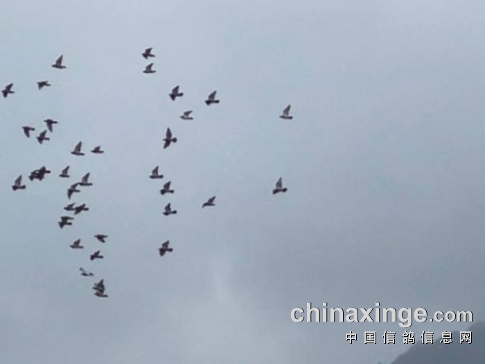 赛鸽放飞瞬间,众鸽齐飞,成梯队式归来