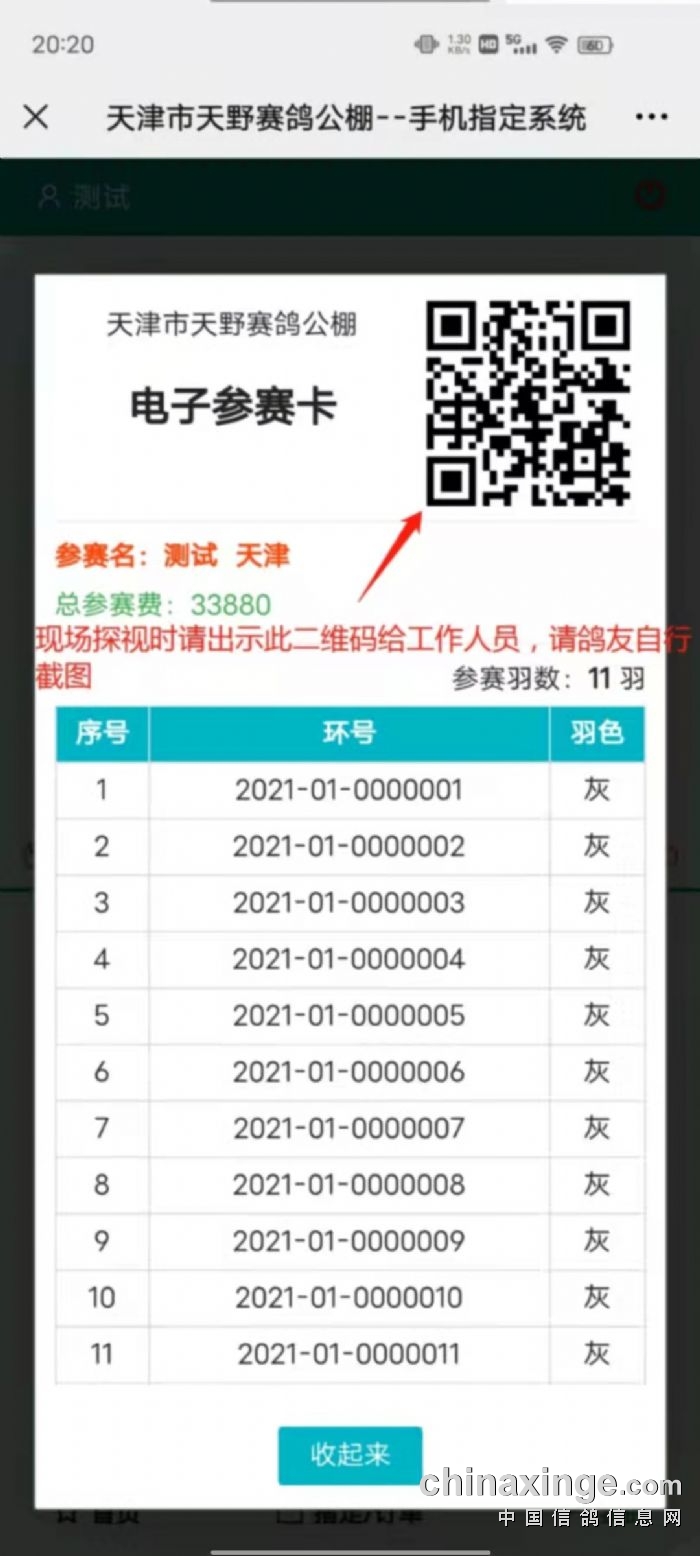 2.到公棚把电子参赛卡展示给办公室工作人员,进行扫码打印纸质参赛