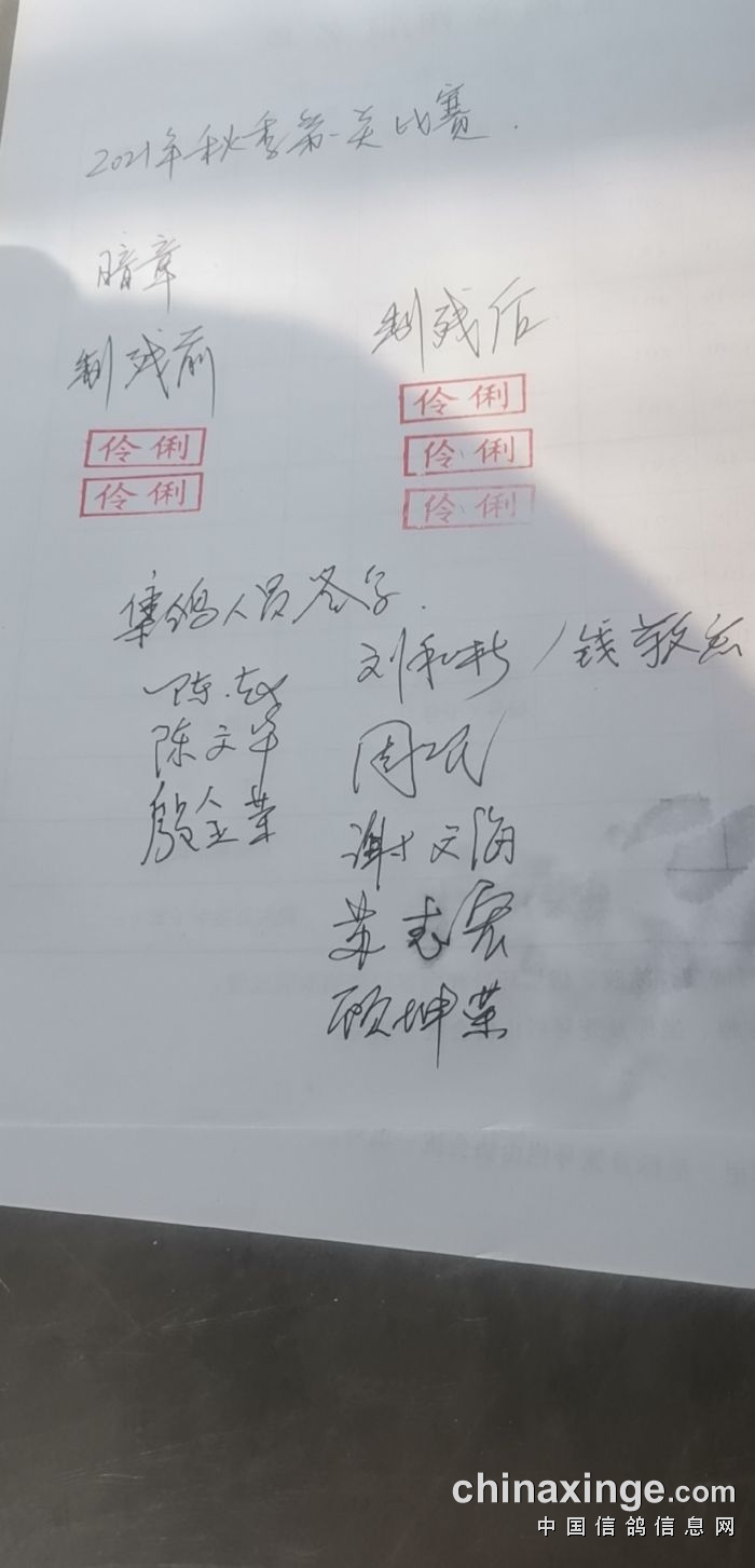 2021年秋季第一关450公里上笼扫描数据在场监放鸽友证明签字