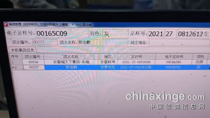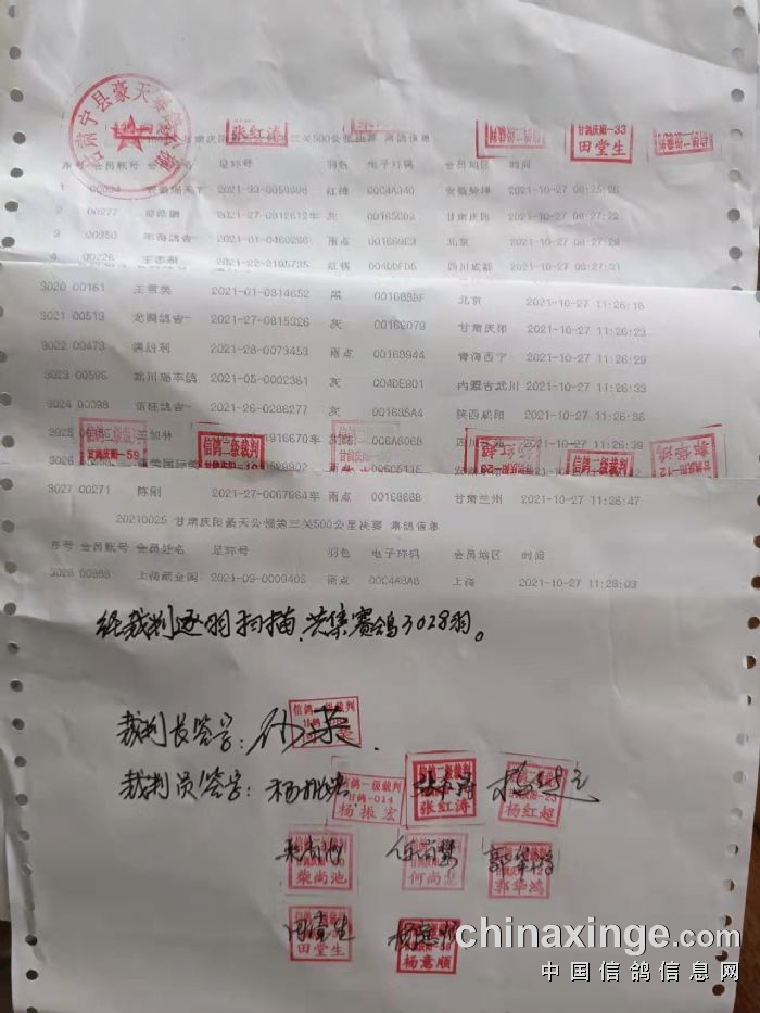 甘肃庆阳豪天公棚第三关500公里决赛集鸽清单
