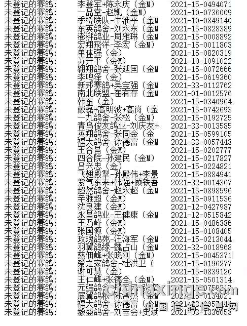以下赛鸽是本次收费站归巢过程中出现的未登记赛鸽,经研究,我们对这些赛鸽进行如下处理: