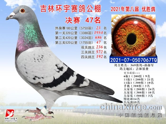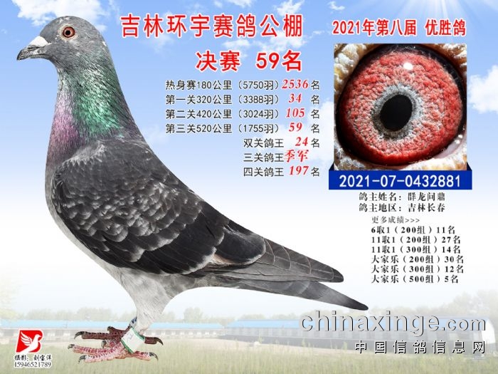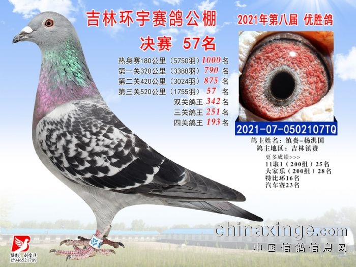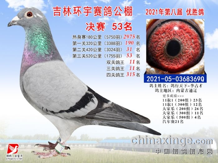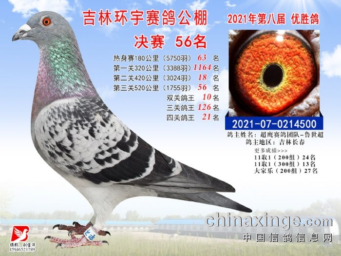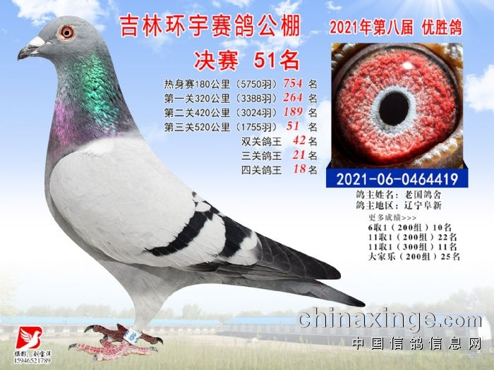 吉林环宇公棚(小棚)520公里决赛获奖鸽照片(46-60)