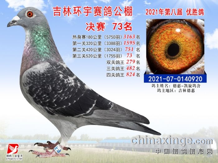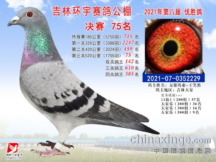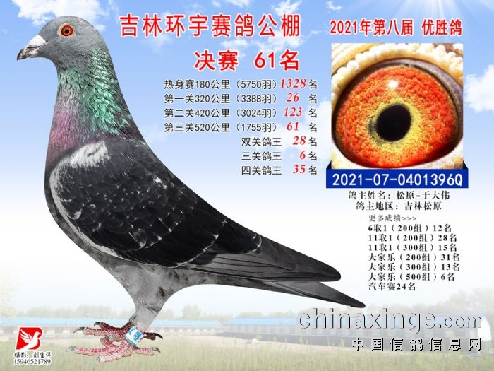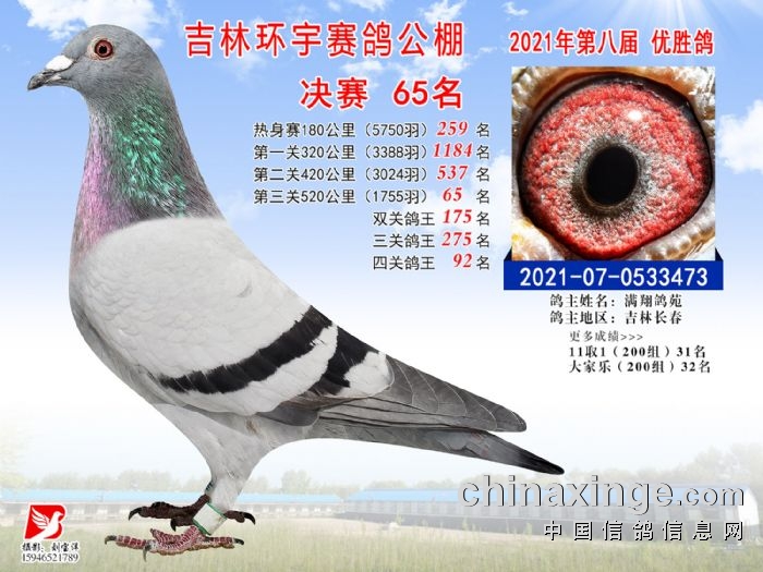 吉林环宇公棚(小棚)520公里决赛获奖鸽照片(61-75)