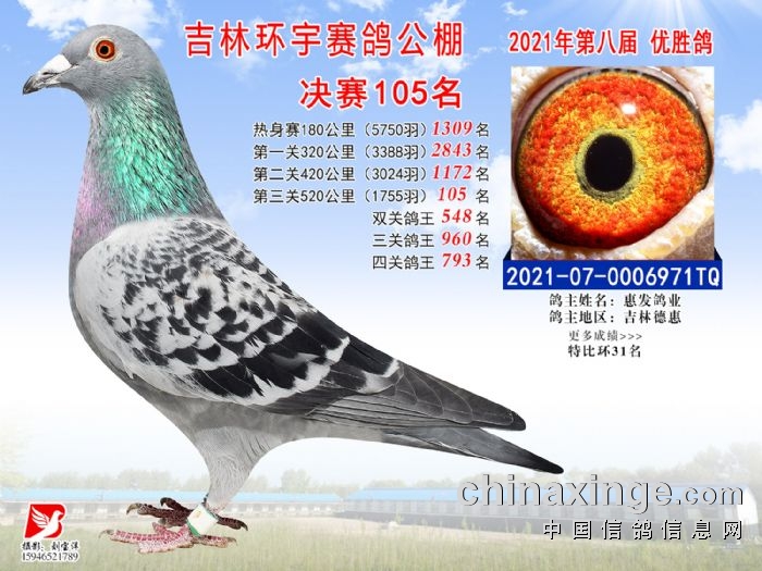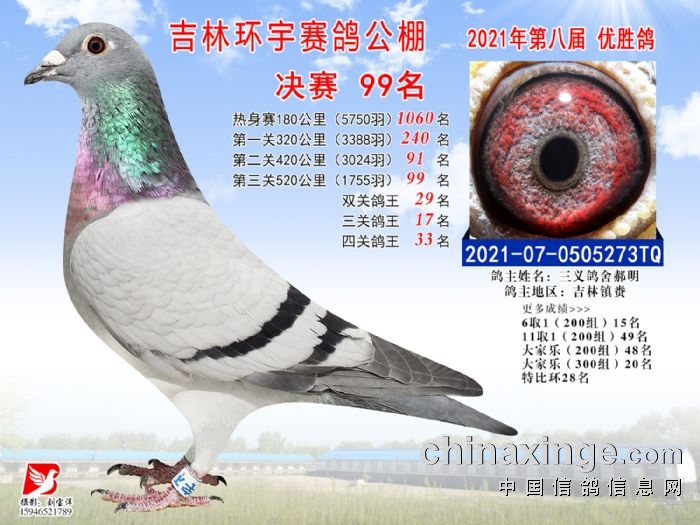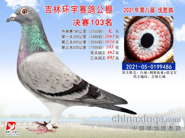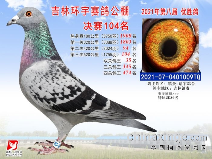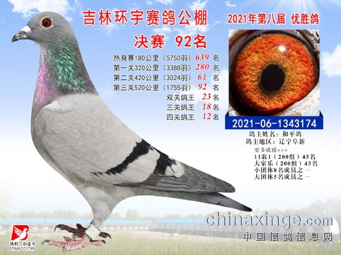 吉林环宇公棚(小棚)520公里决赛获奖鸽照片(91-105)