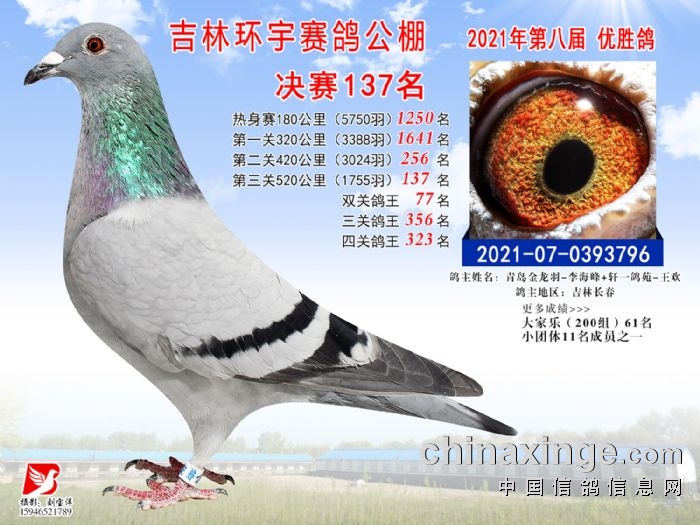 吉林环宇公棚(小棚)520公里决赛获奖鸽照片(136-150)